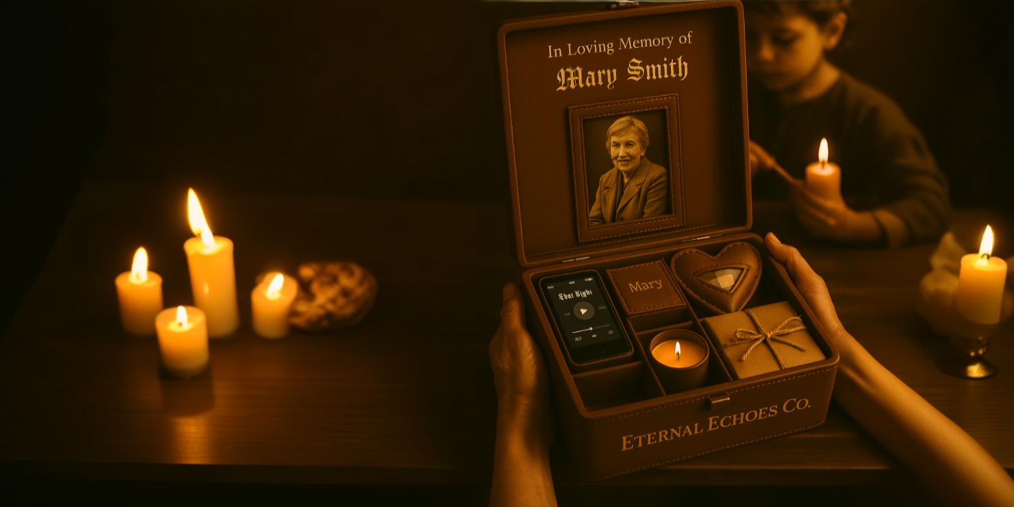 A handcrafted memory box with a personalized voice message, comforting keepsakes, and sacred rituals — created to help you feel closer to the one you still carry.
